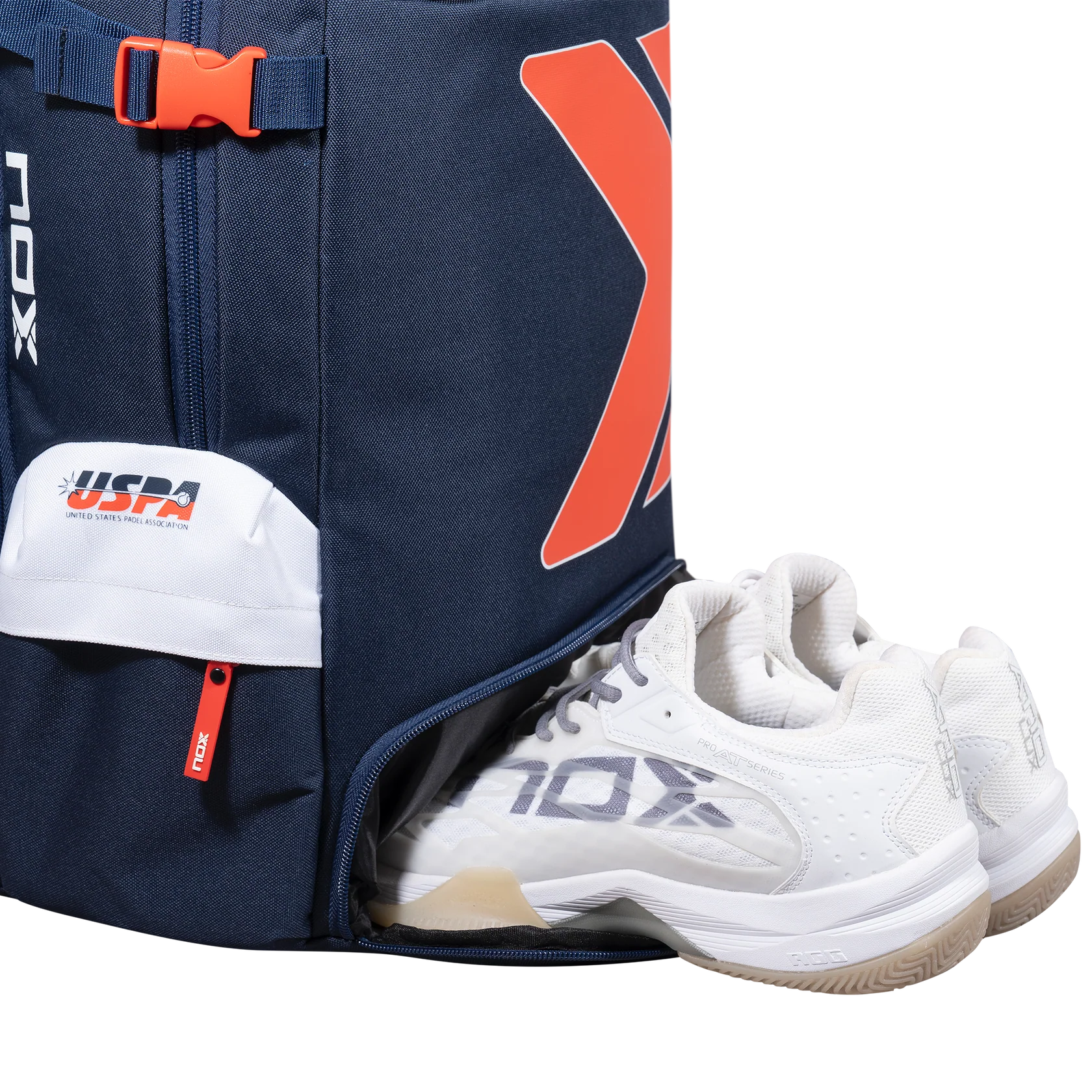 Show your passion for American padel with the NOX USPA Edition Backpack — an exclusive design featuring official United States Padel Association branding. With its bold red, white and blue aesthetic and premium construction, it’s built for players who want style, function, and national pride in one sleek package.